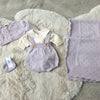 Avvolgi il tuo piccolo tesoro in un'oasi di purezza e morbidezza con questo lussuoso set regalo firmato Wedoble, realizzato al 100% in pregiato cotone organico con filato di cotone. La delicata tonalità lavanda e la raffinata lavorazione traforata incarnano l'eleganza e la cura che contraddistinguono il marchio Wedoble.