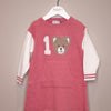Vestitino in maglia Jo Milano a maniche lunghe, perfetto per la stagione fredda. Il capo presenta un design distintivo e sportivo-chic, rosa con maniche a contrasto in bianco. Sul davanti, presenta il numero 1 bianco affiancato da un orsetto realizzato con lavorazione a maglia intarsiata di colore marrone chiaro. Sotto troviamo una comoda tasca a marsupio.