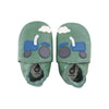 Antipattinamento: la pelle scamosciata che funge da soletta della babbuccia infatti non è un semplice antiscivolo, ma proprio come la pelle nuda non permette di pattinare e quindi impedisce al bambino di cadere. A differenza delle calze antiscivolo fatte con pezzi di gomma, non bloccano il piede.