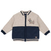 - Cardigan girocollo in maglia misto cotone- lana, mèlange beige con dettagli blu tinta unita