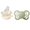 Set di 2 ciucci a farfalla, progettati per permettere un passaggio ottimale dell’aria ed evitare irritazioni della pelle. Tettarella anatomica in silicone. Disponibile in 2 taglie.