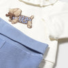 Questo completo di Mayoral è il connubio perfetto di morbidezza e stile per il tuo neonato. Il set include una felpa e una ghettina. La felpa, di un delicato color panna, presenta un colletto a volant e un'applicazione frontale di un cagnolino con un motivo a fantasia blu e marrone. Le ghettine color celeste offrono il massimo del comfort e della praticità. Questo completo è un capo essenziale per il guardaroba del tuo piccolo, perfetto per unire eleganza e comfort.