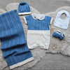 Realizzato in filo di cotone di alta qualità, questo set è perfetto per i primi giorni del tuo bambino. Il pagliaccetto, con il suo colletto in lino ricamato, garantisce comfort e raffinatezza, mentre la copertina, il bavaglino, il cappellino e le scarpine completano il look con un tocco di eleganza e una delicata lavorazione a maglia.