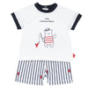 - Completo mare in jersey di cotone, maglietta con bordi in costina elasticizzata e stampa frontale con parti a rilievo