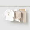 Questo delizioso coordinato a tre pezzi Mayoral è l'ideale per vestire il tuo neonato con stile e comfort fin dai primi giorni di vita. Realizzato in morbida maglia di cotone beige, è perfetto per le stagioni più fresche.