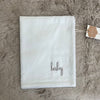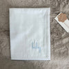 Fascia per neonati bianca con un cavallino ricamato, realizzata in cotone leggero, per neonati maschi e femmine. Le misure della fascia per neonati sono 75 cm x 75 cm. Il ricamo è disponibile in diversi colori.