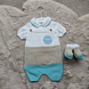 Un capo intramontabile per il guardaroba del tuo neonato. Questa deliziosa salopette Juliana, realizzata in morbido cotone, è perfetta per le giornate più calde. Le delicate righe bianche, tortora e verde acqua creano un look sofisticato e allo stesso tempo giocoso