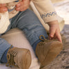 Regala uno stile classico ai primi passi (o ai primi scodinzolii!) del tuo neonato con questi adorabili stivaletti Mayoral. Realizzati in un morbido e soffice tessuto beige, questi stivaletti presentano graziosi dettagli in stile brogue con dettagli traforati e cuciture decorative, che richiamano le scarpe dei grandi. La chiusura con lacci garantisce una calzata sicura e regolabile, mentre la morbida suola offre il massimo comfort ai piedini più delicati. Presentati in una graziosa confezione regalo, sono un regalo ideale per baby shower o come ricordo speciale.
