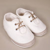 Queste scarpette firmate Marlù sono l'accessorio perfetto per un evento speciale del tuo piccolo. Bianche con rifiniture color tortora e lacci.