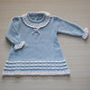 Elegante e delicato, realizzato in morbido materiale misto lana, il vestito garantisce il massimo comfort senza rinunciare all'eleganza, con un delicato tono azzurrino e raffinati dettagli bianchi.