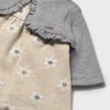 Vestito manica lunga per neonata. Girocollo. Modello con finto cardigan sovrapposto. Chiusura con cerniera nella parte posteriore per un vestibilità rapida e comoda. Confezione in diversi tessuti per ottenere un design unico e speciale. Modello con riccio. Design stampato.
